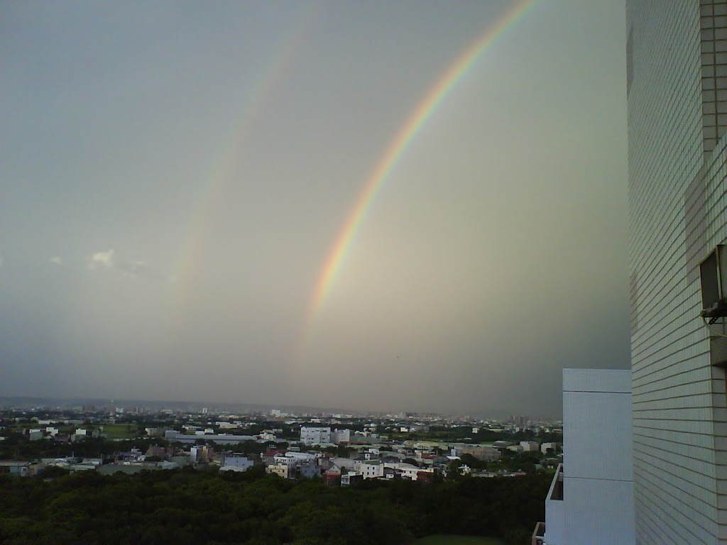 昨天的下午的雷雨後,這個超巨型彩虹就出現了。霓也看得一清二楚。可惜拍照角度不好,無法盡覽它的全貌。