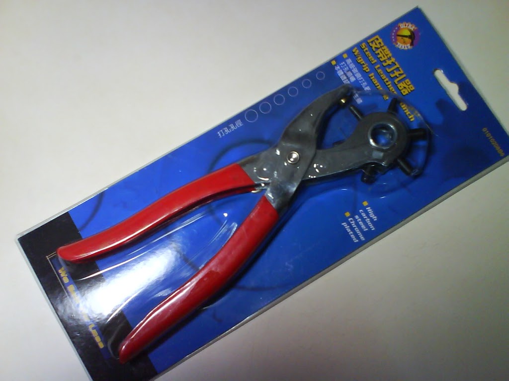 自從我又瘦了之後,因為孔位不足,就一直很少用 levi’s 那條皮帶。今天下午去 B&Q 花 56元新台幣買下這把「皮帶打孔鉗」!(是便宜的大陸貨)
