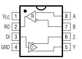 MAX490 能提供 TTL 或 CMOS 與 RS422 或 RS485 界面互換的功能。支援全雙工(可同時輸入、輸出數位訊號),界面速度可高達 2.5Mbps。