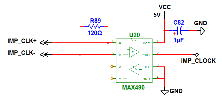 電源上僅需 5 V。除了電源的穩壓電容外,RS422/RS485輸出/輸入需加上 120 歐姆的匹配電阻。