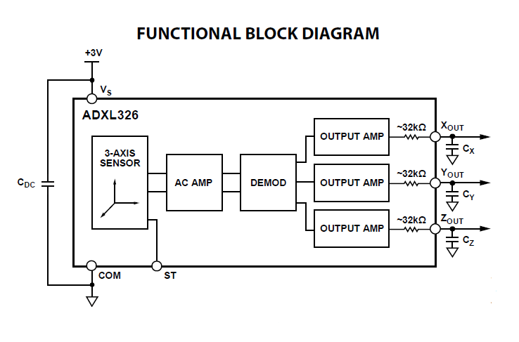 ADXL326 的製造商是 Analog Devices, Inc.。以下部分圖片截取至產品規格書(2012 年三月)。
