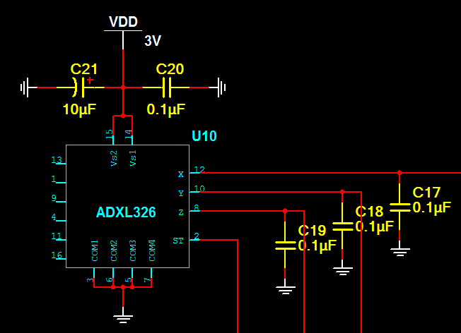 ADXL326 對於加速度的量測範圍是目前該系列晶片中最廣範的(±16 g)。電路設計也非常簡單,僅需 4 個外接電容。非常適合用於高加速度的量測應用。