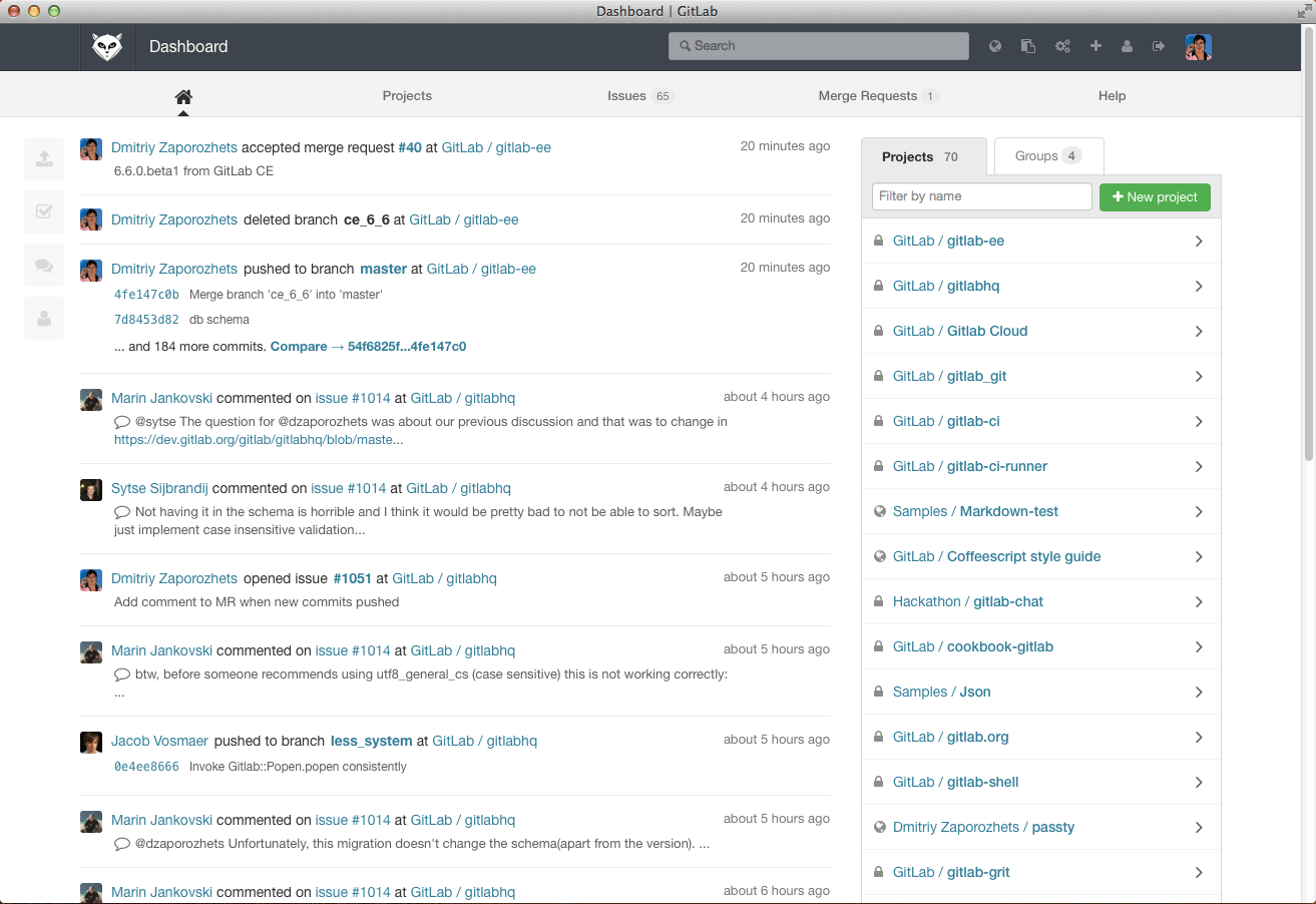 GitLab 服務起來後,管理者便能新增使用者,並進行 fork + pull-request (GitLab 改稱為 merge-request)協作。就如同在 GitHub 上一樣。